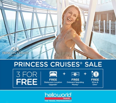 *Helloworld Exclusive*Princess Cruises - 3 for FREE!
