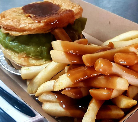 Today’s great lunch deal is at CJ’s Pastries. Select your choice of pie with mushy peas, chips and gravy for ONLY $9.90!